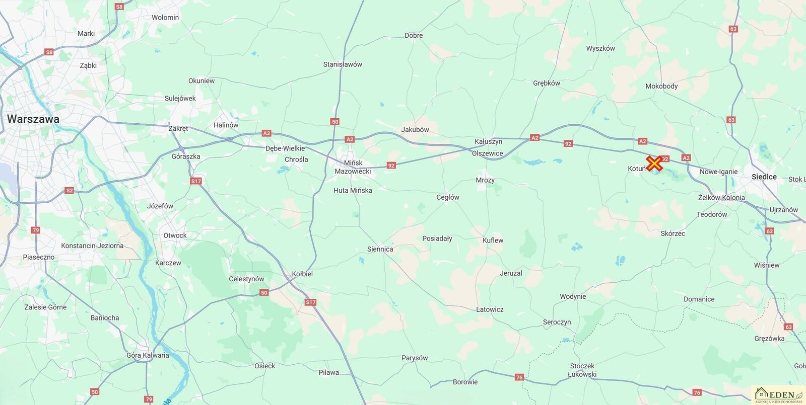 Nieruchomość z dużym potencjałem, położona przy drodze asfaltowej, oddalona o ok. 300 m od drogi krajowej nr 2 (Warszawa-Terespol).